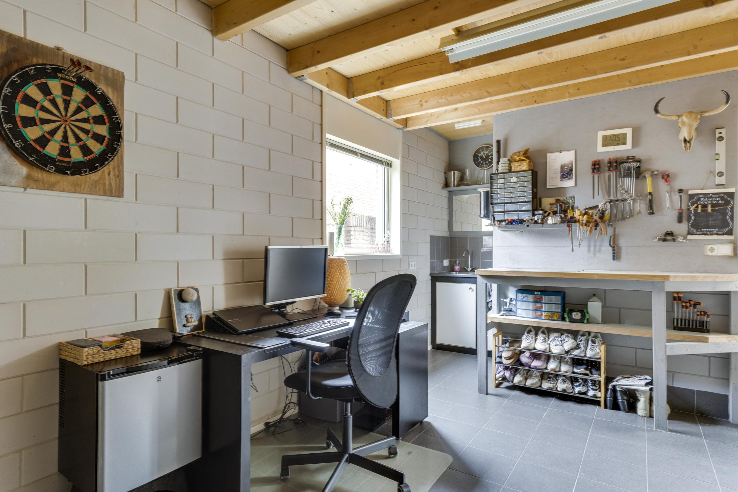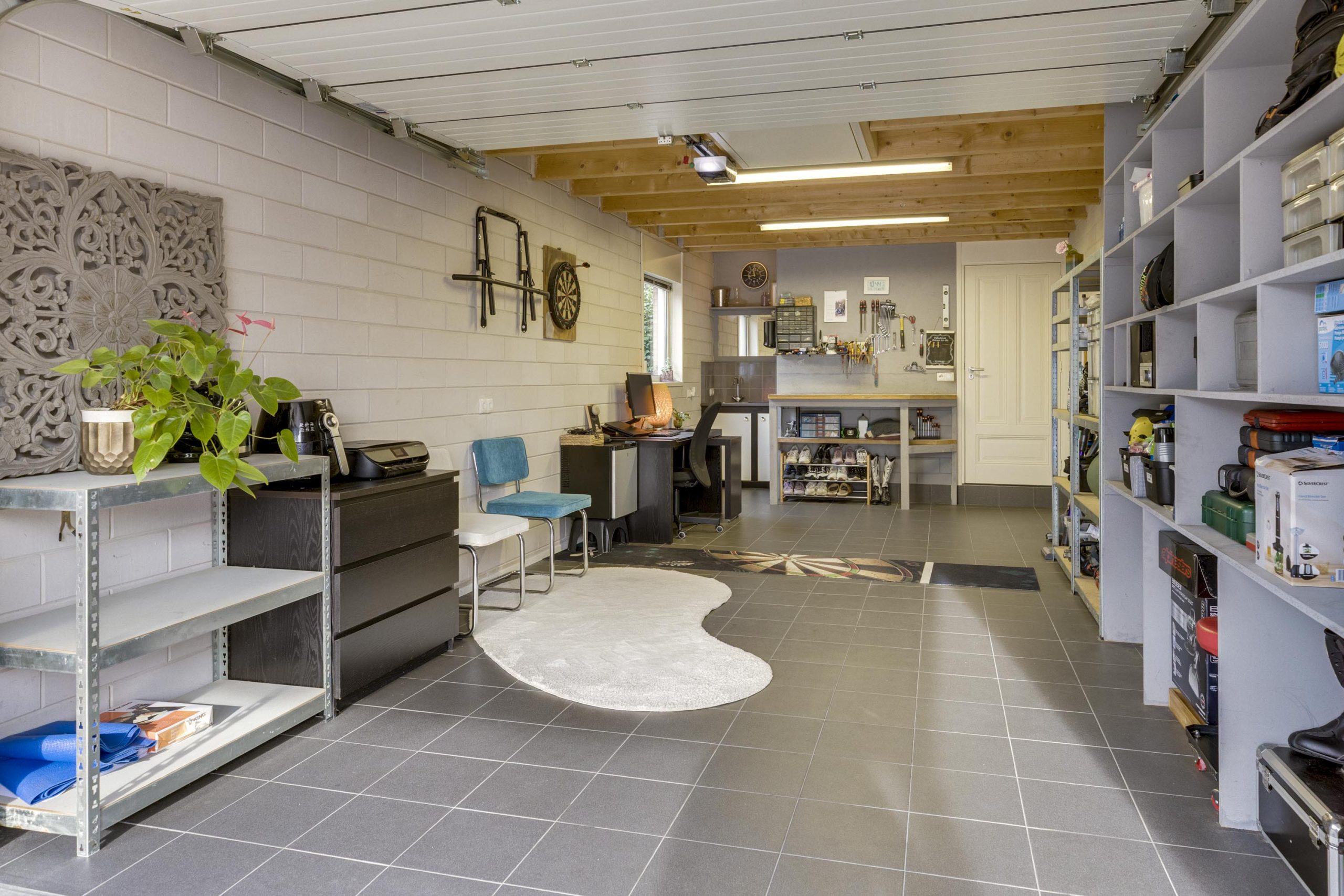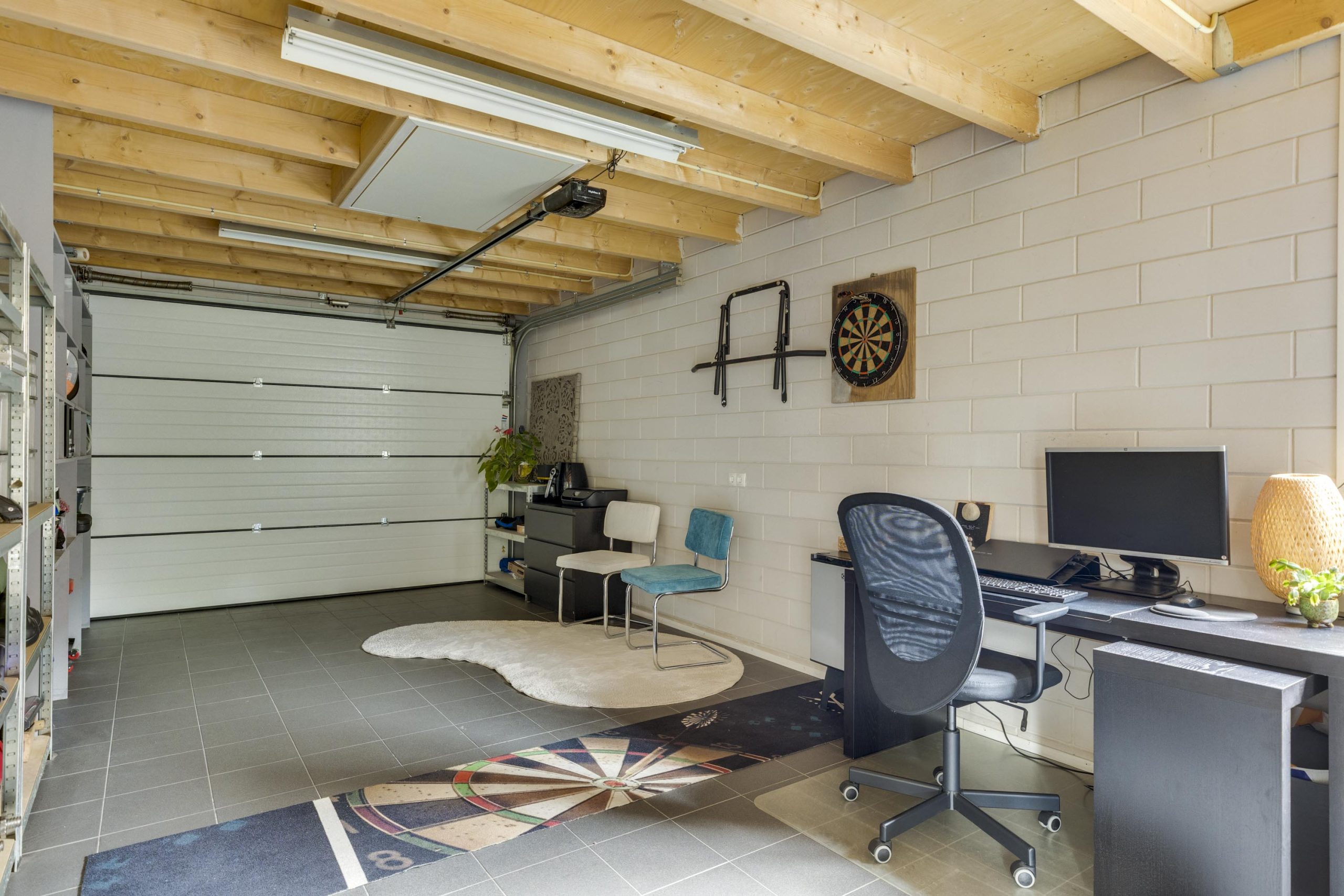 De voormalige garage is volledig geïsoleerd, heeft vloerverwarming, een groot raam, en is voorzien van keukenblok met wasbak met mengkraan en close in boiler en een deur naar de hal die verbonden is met het huis. Deze plek leent zich uitstekend als mantelzorgruimte, gastenkamer, hobbyruimte/atelier, kantoor aan huis óf nog als garage.