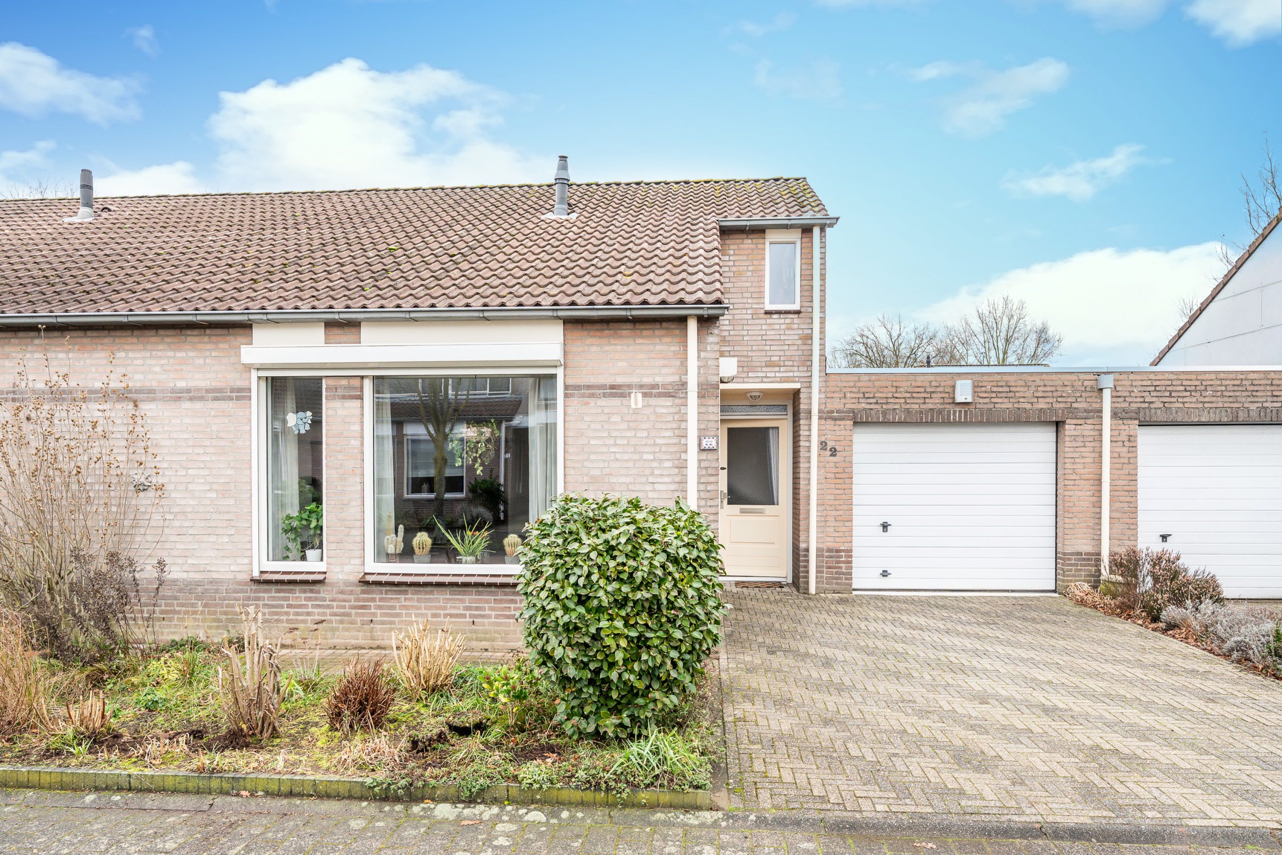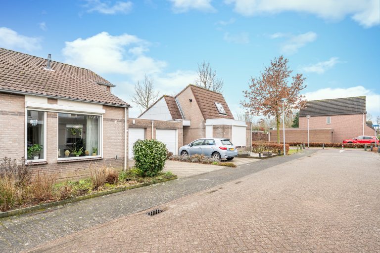 De voortuin is verzorgd en groen aangelegd met vaste beplanting. De brede oprit biedt ruimte voor meerdere auto’s en biedt bovendien de mogelijkheid tot het realiseren van een carport. Vanuit de oprit zijn zowel de entree van de woning als de aanpandige garage direct bereikbaar.