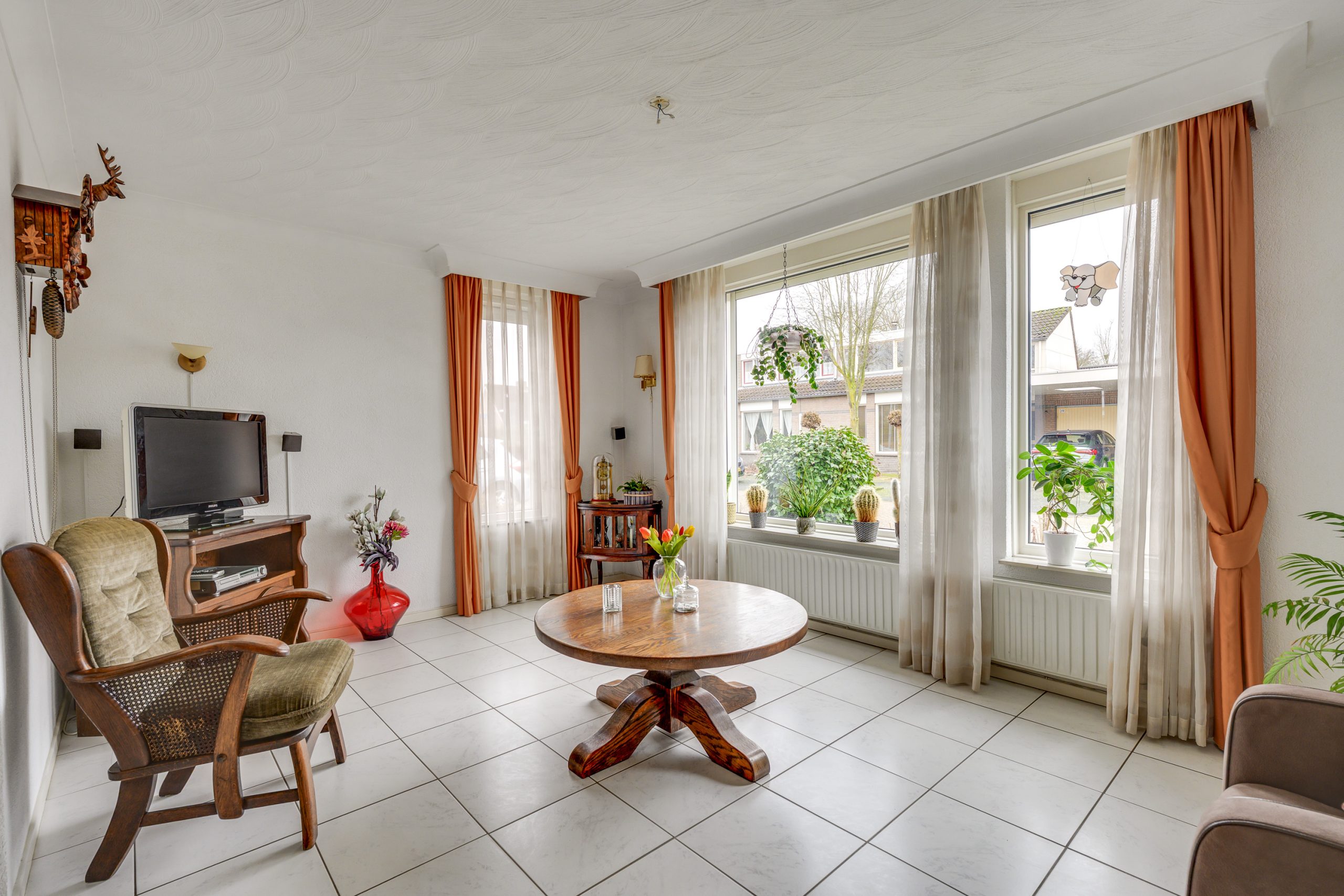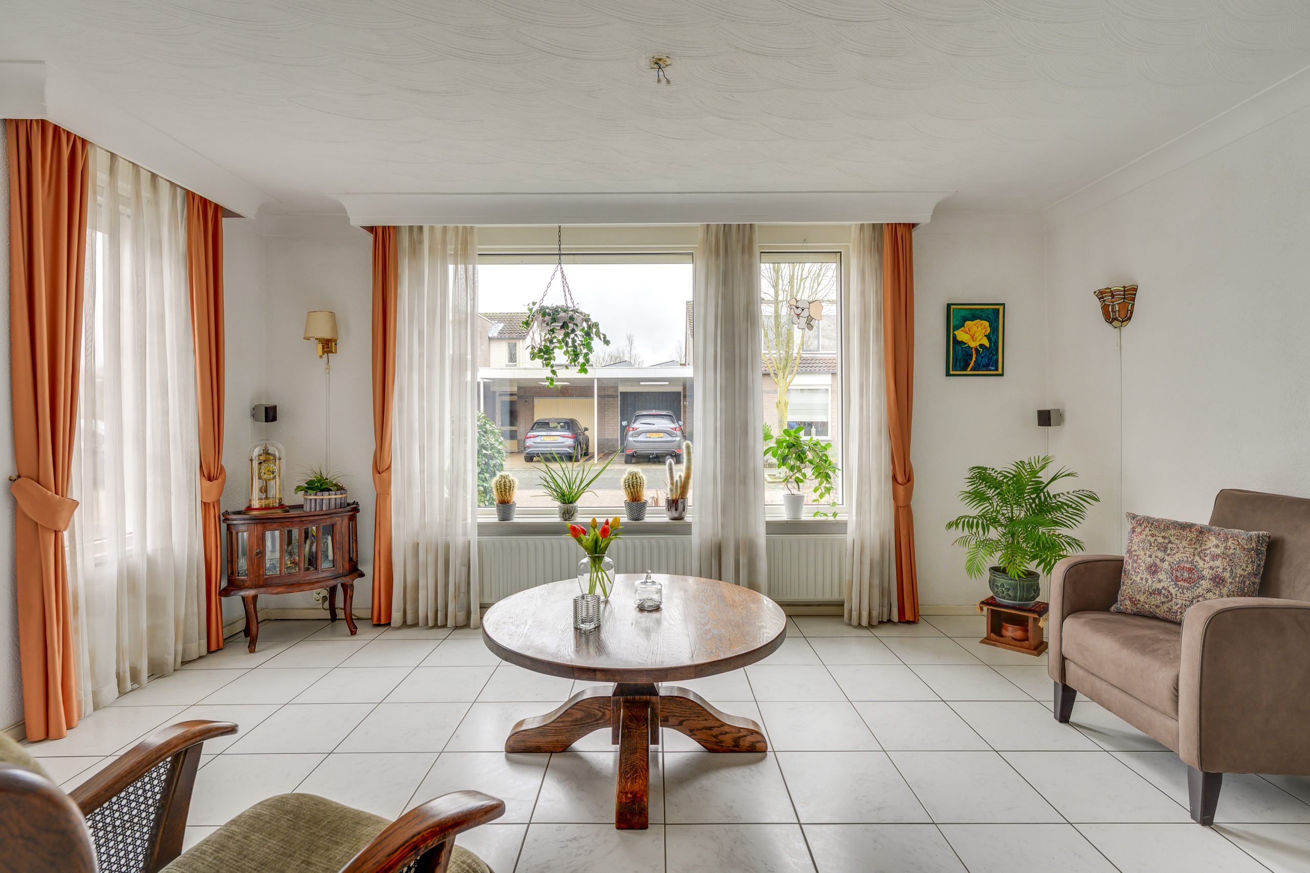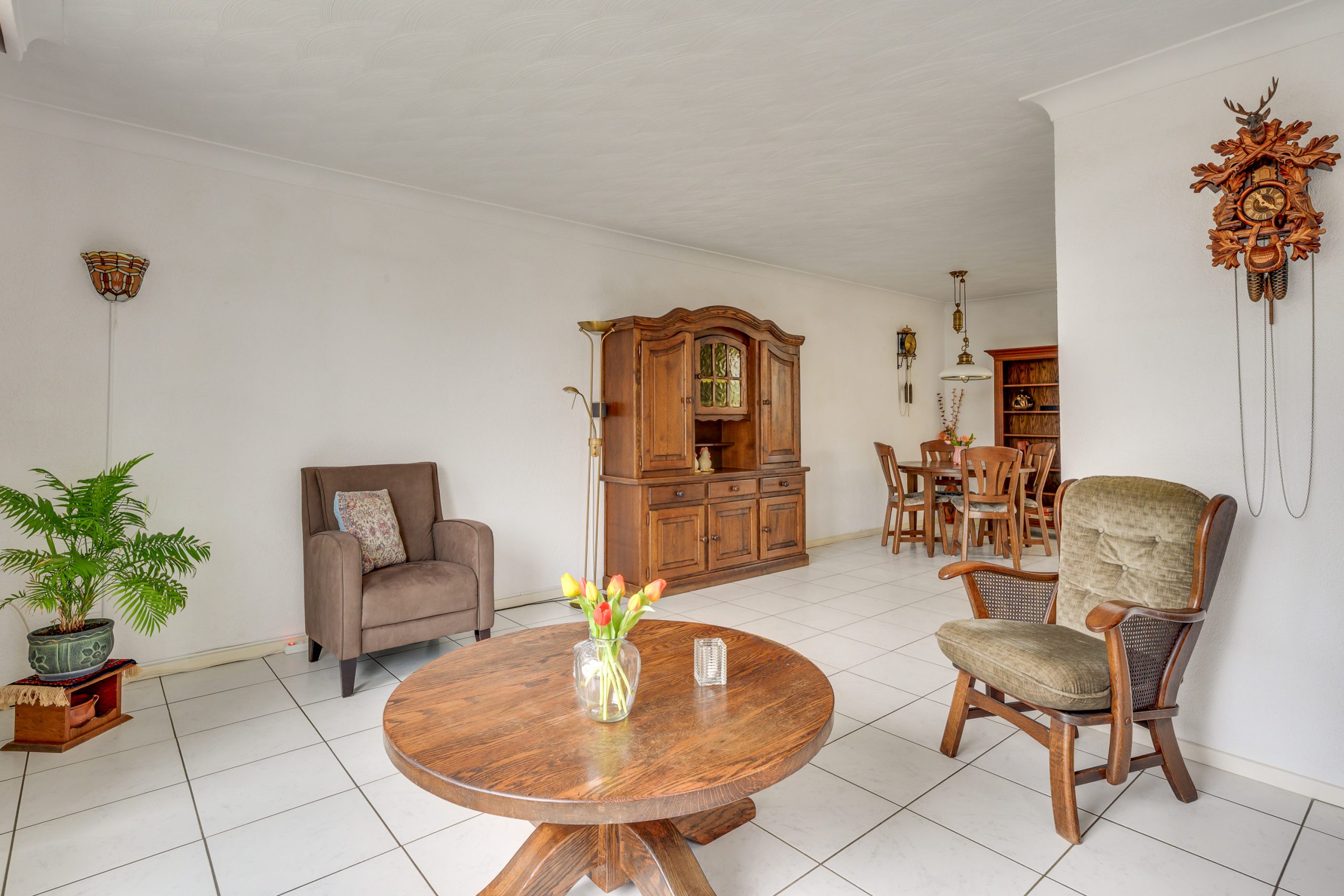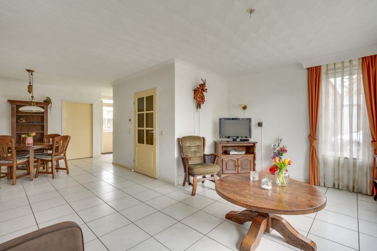 De ruime living is aangenaam en sfeervol ingedeeld met aan de voorzijde een comfortabel zitgedeelte en aan de achterzijde een royaal eetgedeelte. De ruimte is afgewerkt met lichte tegelvloer. De grote raampartijen met kunststof kozijnen, voorzien van HR++ beglazing en een elektrisch rolluik, zorgen voor een prettige lichtinval en een comfortabele woonbeleving, waarbij privacy gewaarborgd blijft.