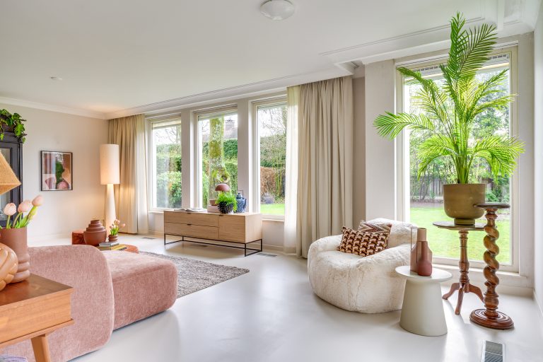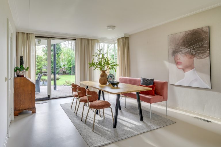 Een ruimte die je omarmt: licht, open en uitnodigend, met een sfeer die rust en vrijheid uitstraalt. Grote raampartijen rondom laten het daglicht rijkelijk binnenstromen en bieden een fraai uitzicht op de tuin, terwijl de schuifpui een directe verbinding met het terras creëert. De gietvloer zorgt voor rust en een eigentijdse uitstraling, terwijl de ramen zijn voorzien van zonnescreens voor extra comfort. De ruimte is dankzij haar opzet en ligging breed inzetbaar en leent zich uitstekend voor verschillende woonfuncties, zoals een heerlijke tuinkamer, een rustig thuiskantoor, praktijk/bedrijf aan huis of een inspirerende hobbyruimte. Een plek die zich moeiteloos aanpast aan uw woonwensen en daarmee een waardevolle aanvulling vormt op het geheel.