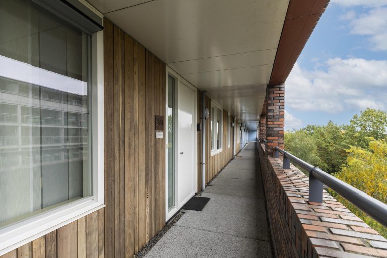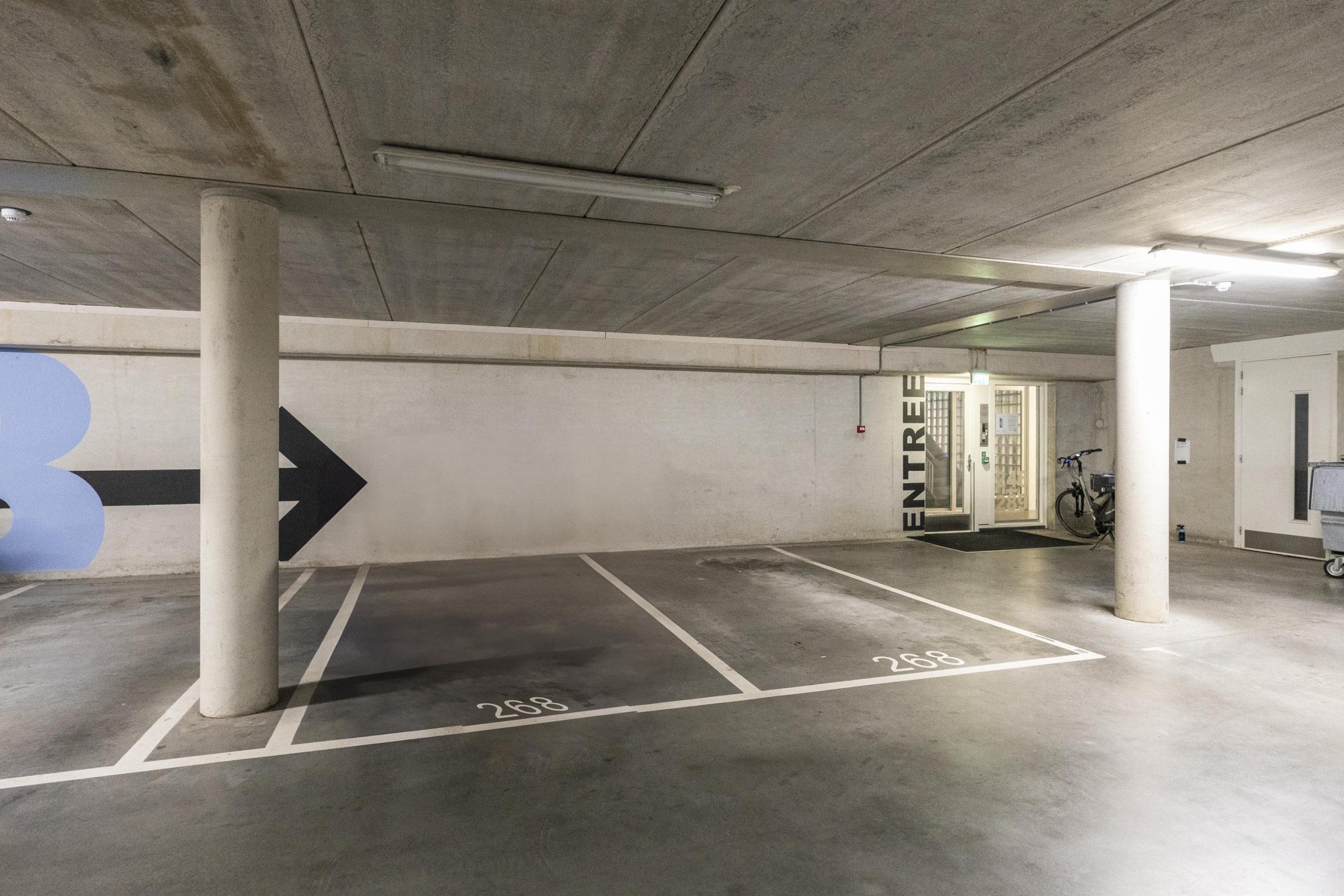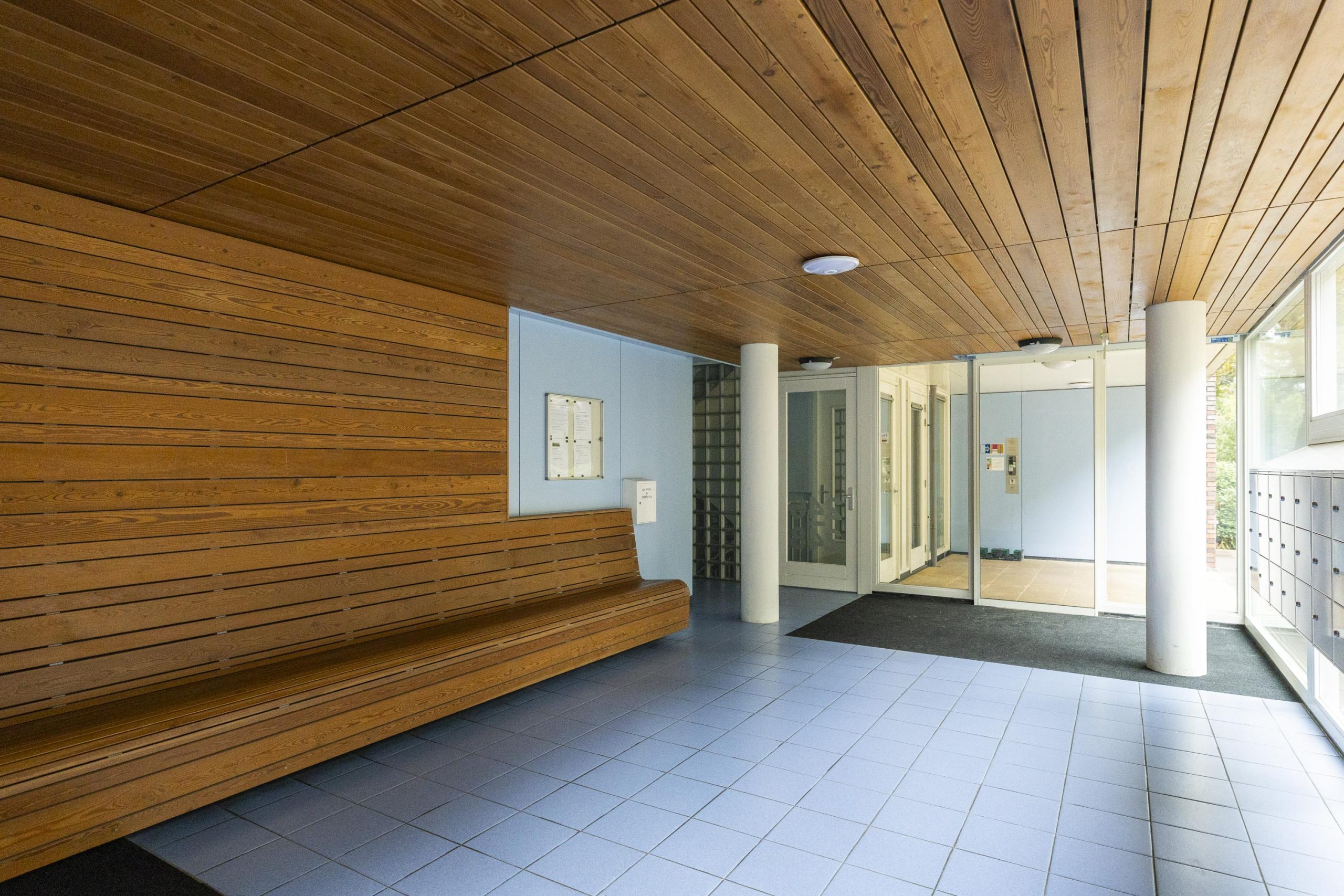 De gezamenlijke entree van het complex is keurig onderhouden en voorzien van een video-intercominstallatie en brievenbussen. Via de lift of het trappenhuis bereikt u eenvoudig de vijfde verdieping, waar het appartement is gelegen. De bijbehorende berging bevindt zich op de begane grond en de twee eigen parkeerplaatsen in de afgesloten parkeerkelder van het complex.
