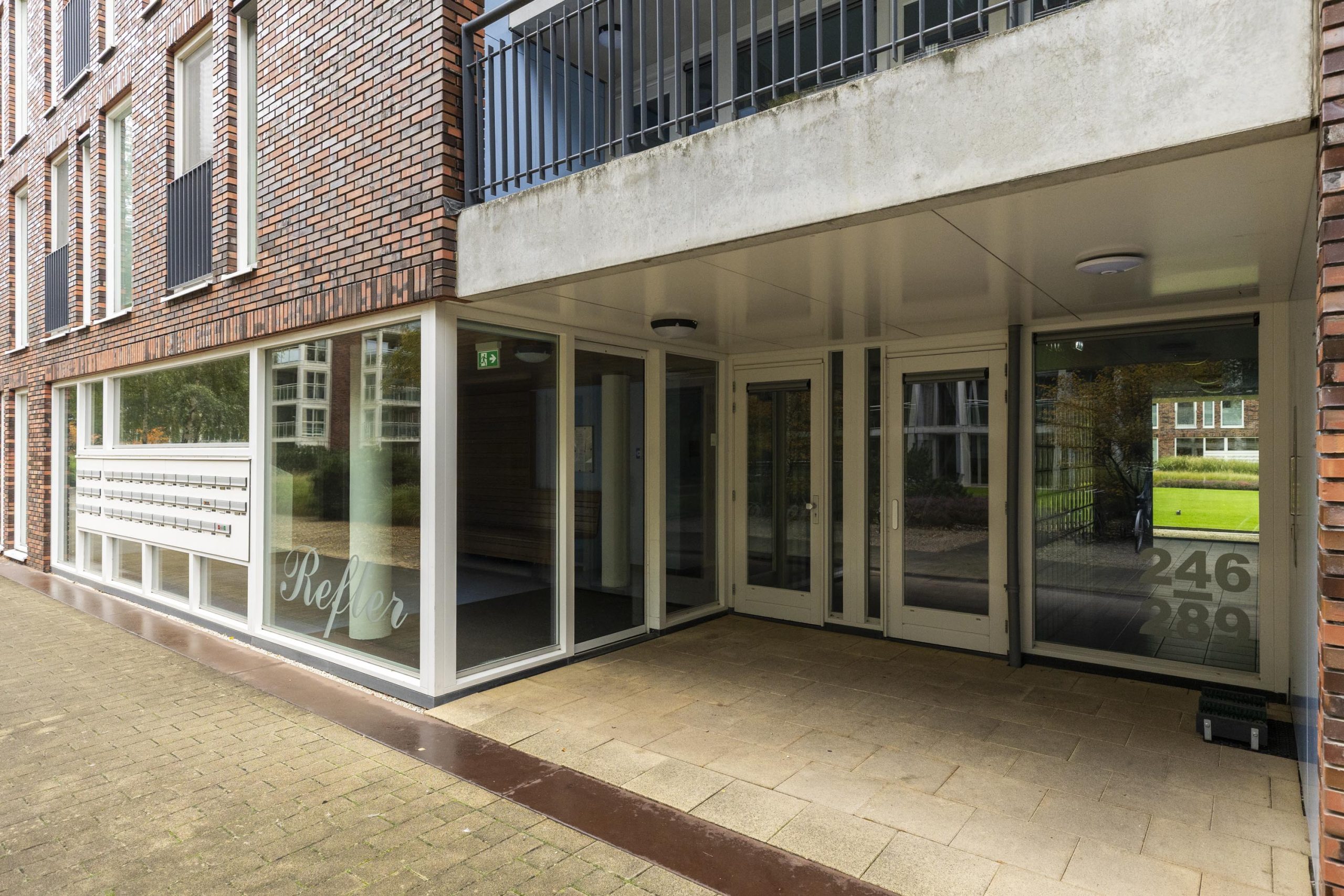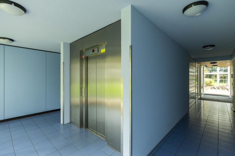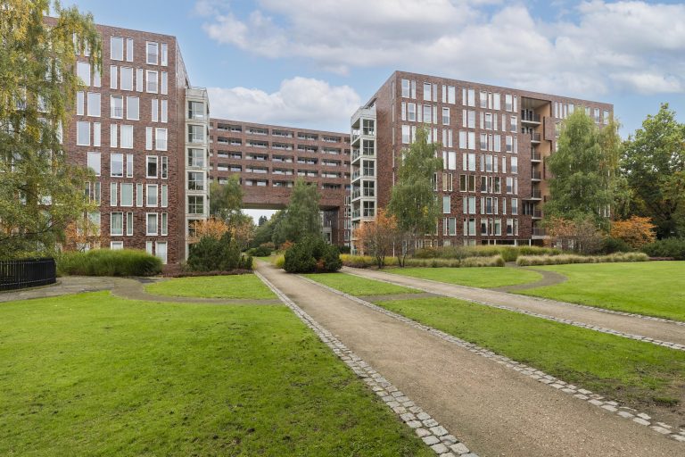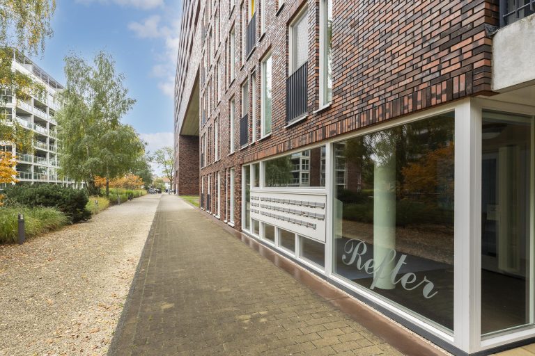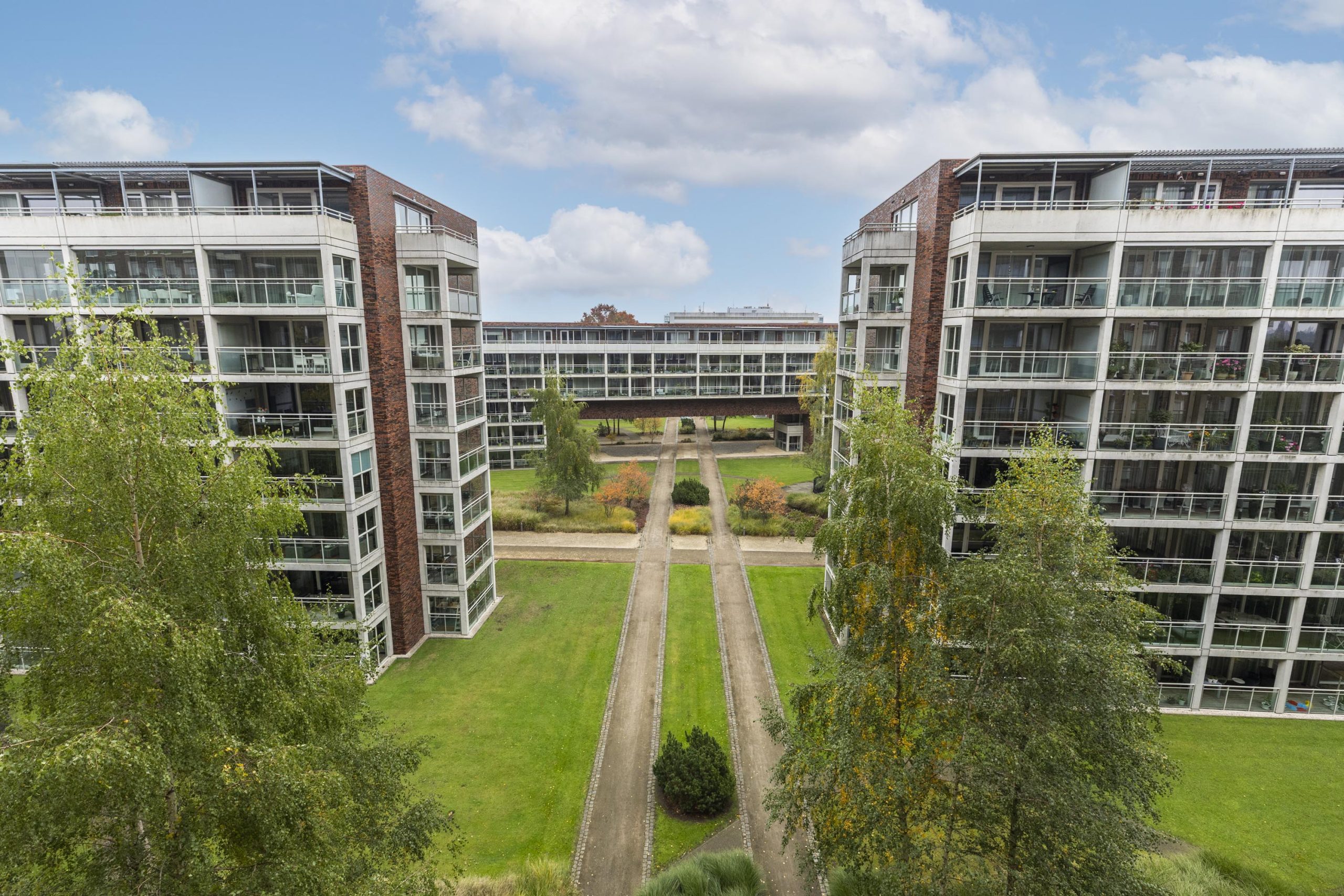 De gezamenlijke entree van het complex is keurig onderhouden en voorzien van een video-intercominstallatie en brievenbussen. Via de lift of het trappenhuis bereikt u eenvoudig de vijfde verdieping, waar het appartement is gelegen. De bijbehorende berging bevindt zich op de begane grond en de twee eigen parkeerplaatsen in de afgesloten parkeerkelder van het complex.