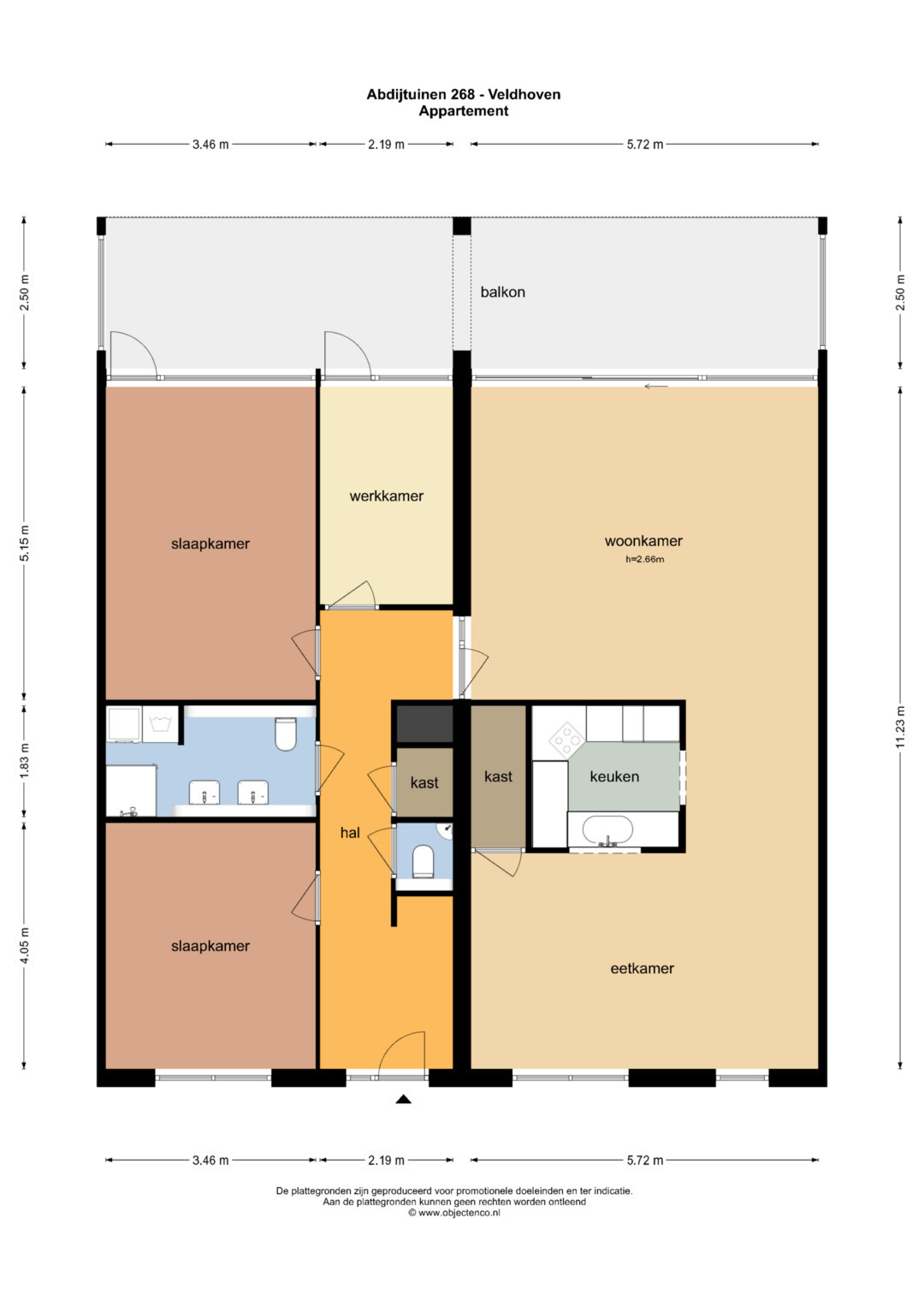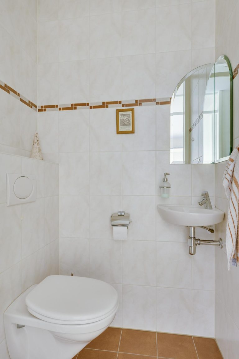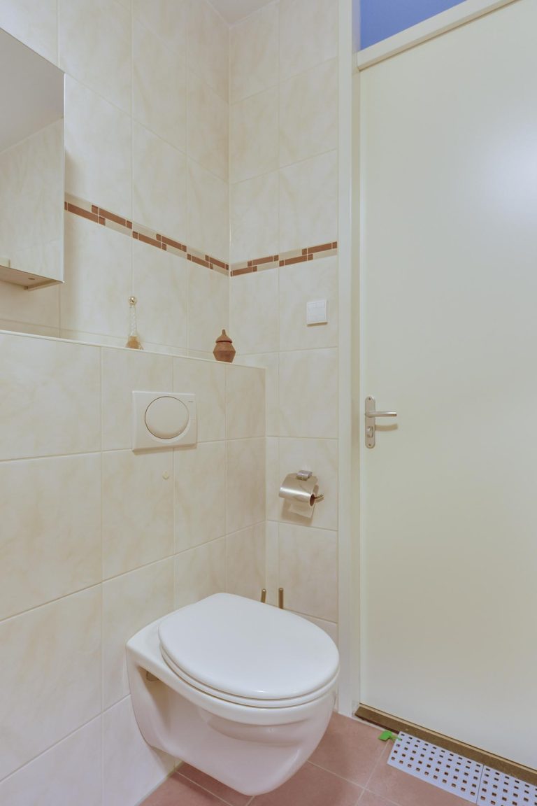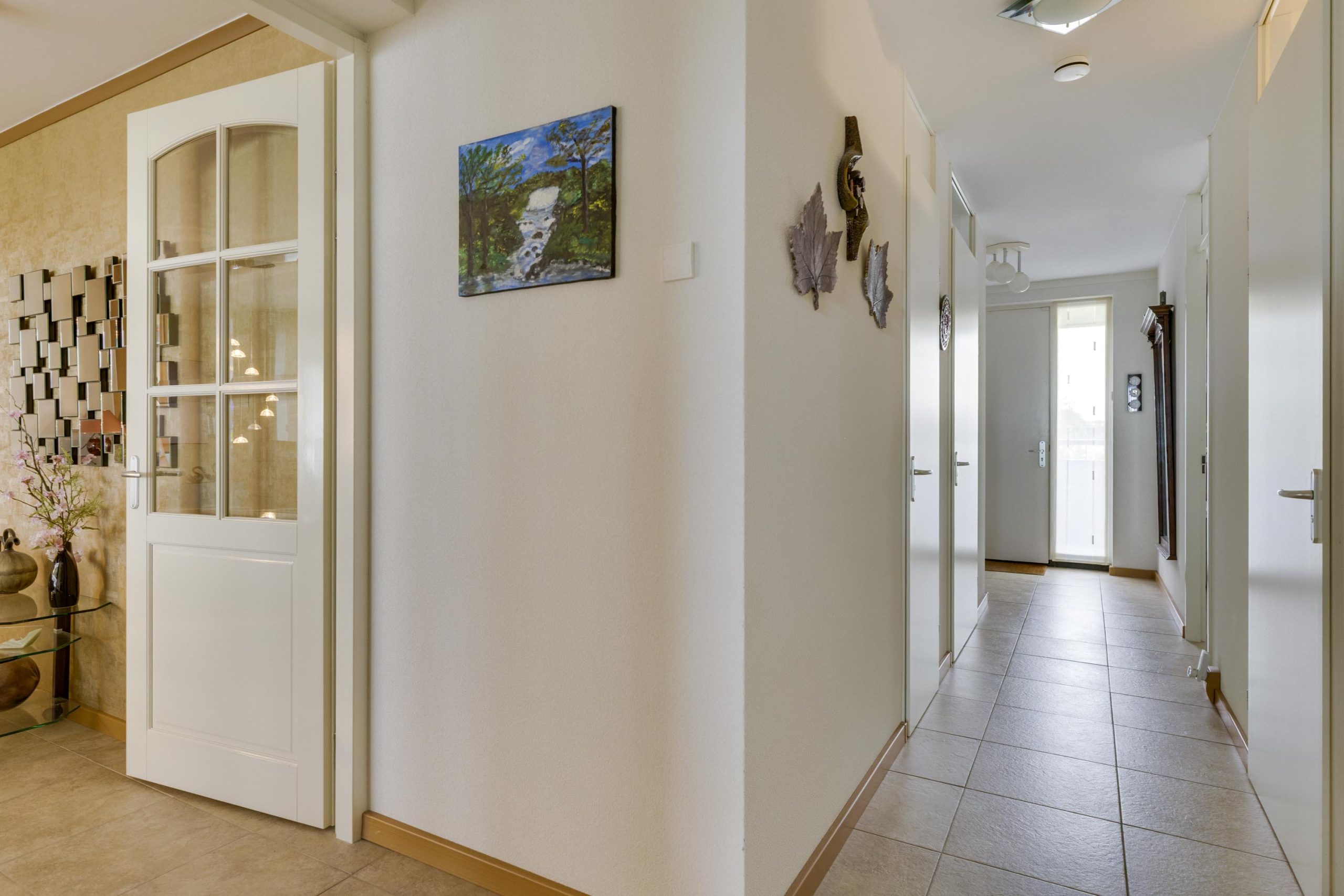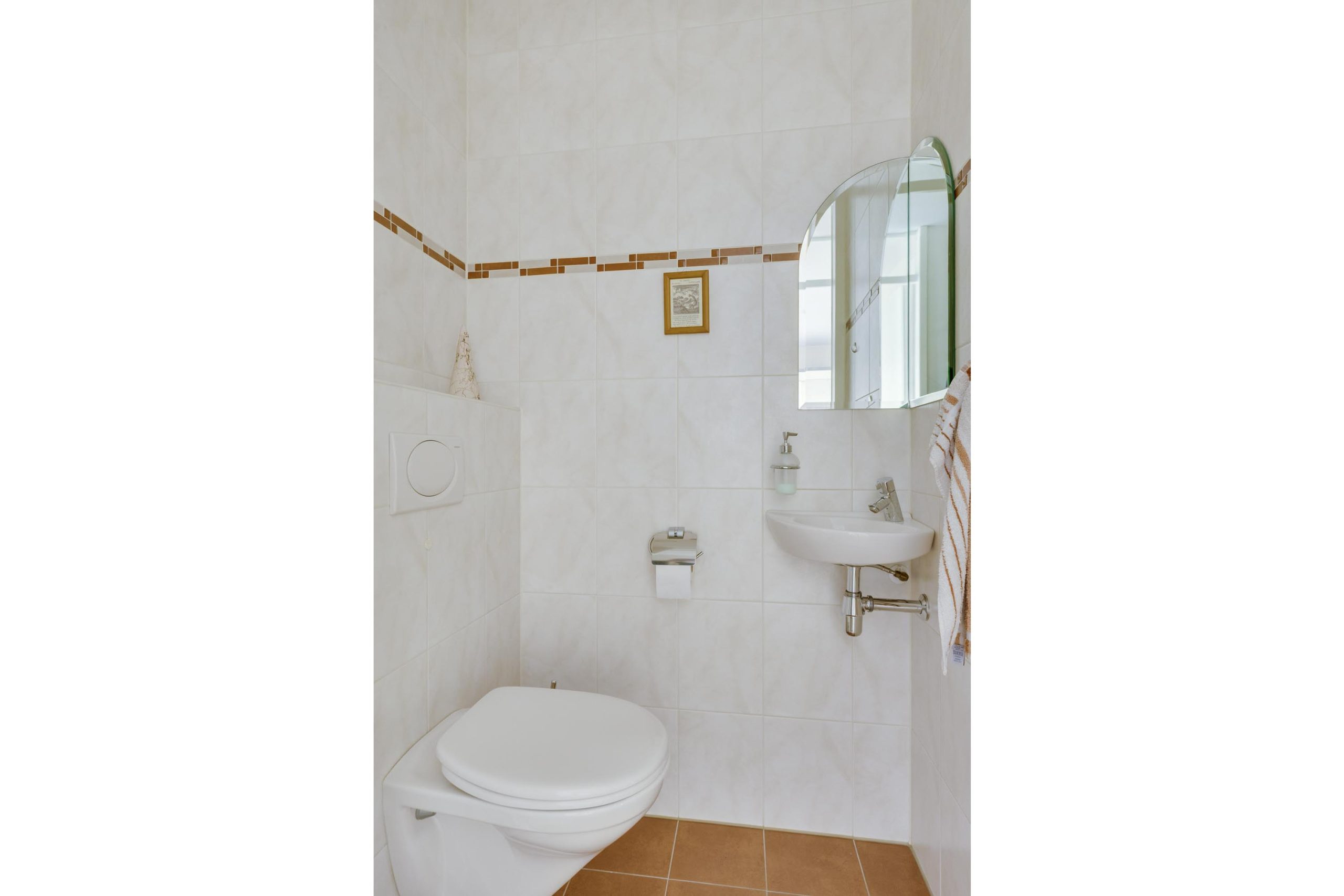 Bij binnenkomst in het appartement komt u in een royale hal die centraal in de woning ligt. Direct rechts bevindt zich het gasten-toilet, een praktische en verzorgde ruimte die volledig is betegeld en voorzien van een fontein en mechanische ventilatie. Vanuit de hal heeft u toegang tot alle vertrekken. De ruimtelijke opzet en nette afwerking zorgen direct voor een gevoel van rust en overzicht.