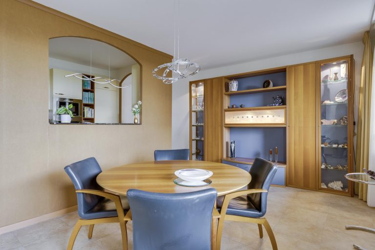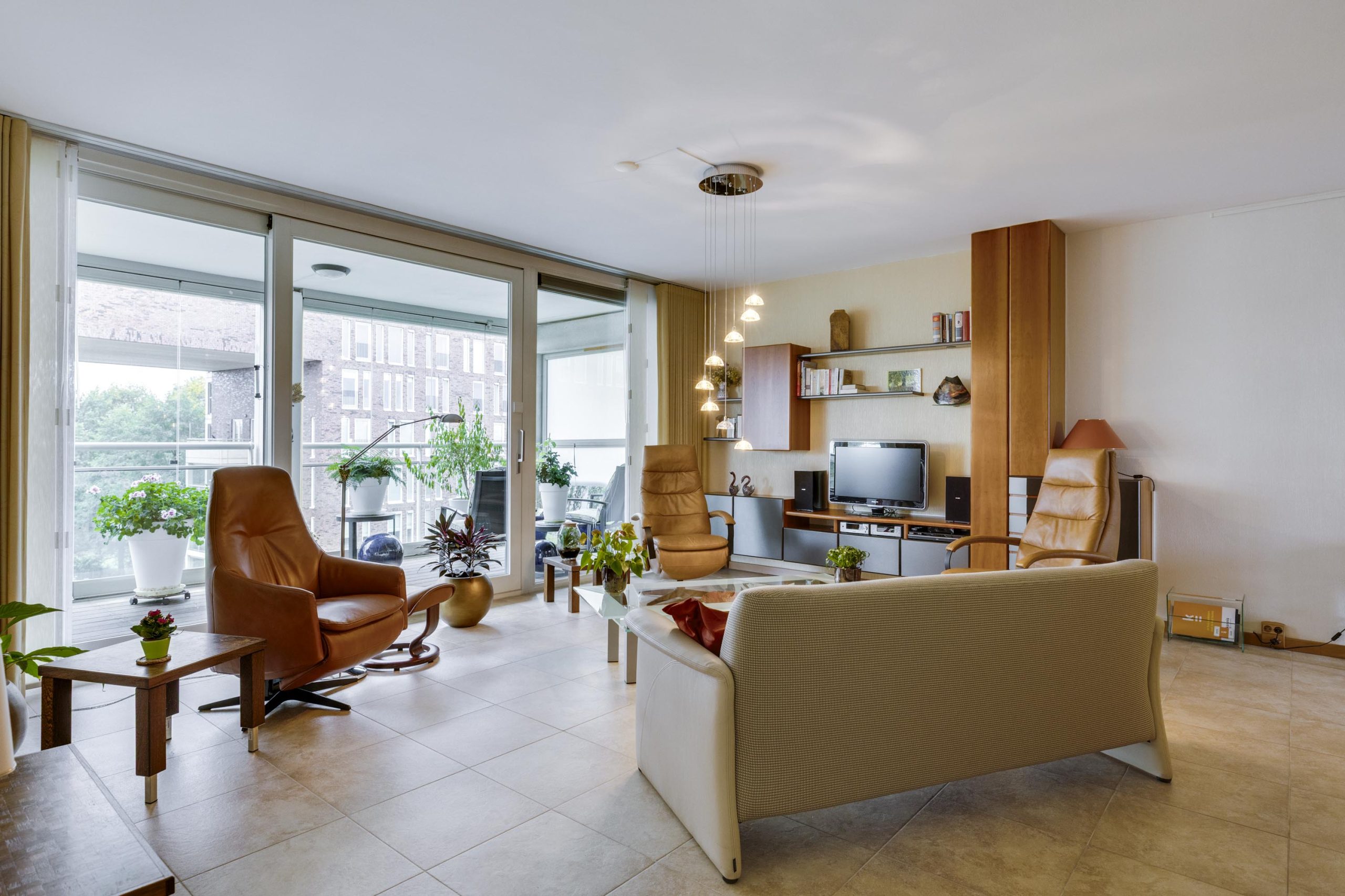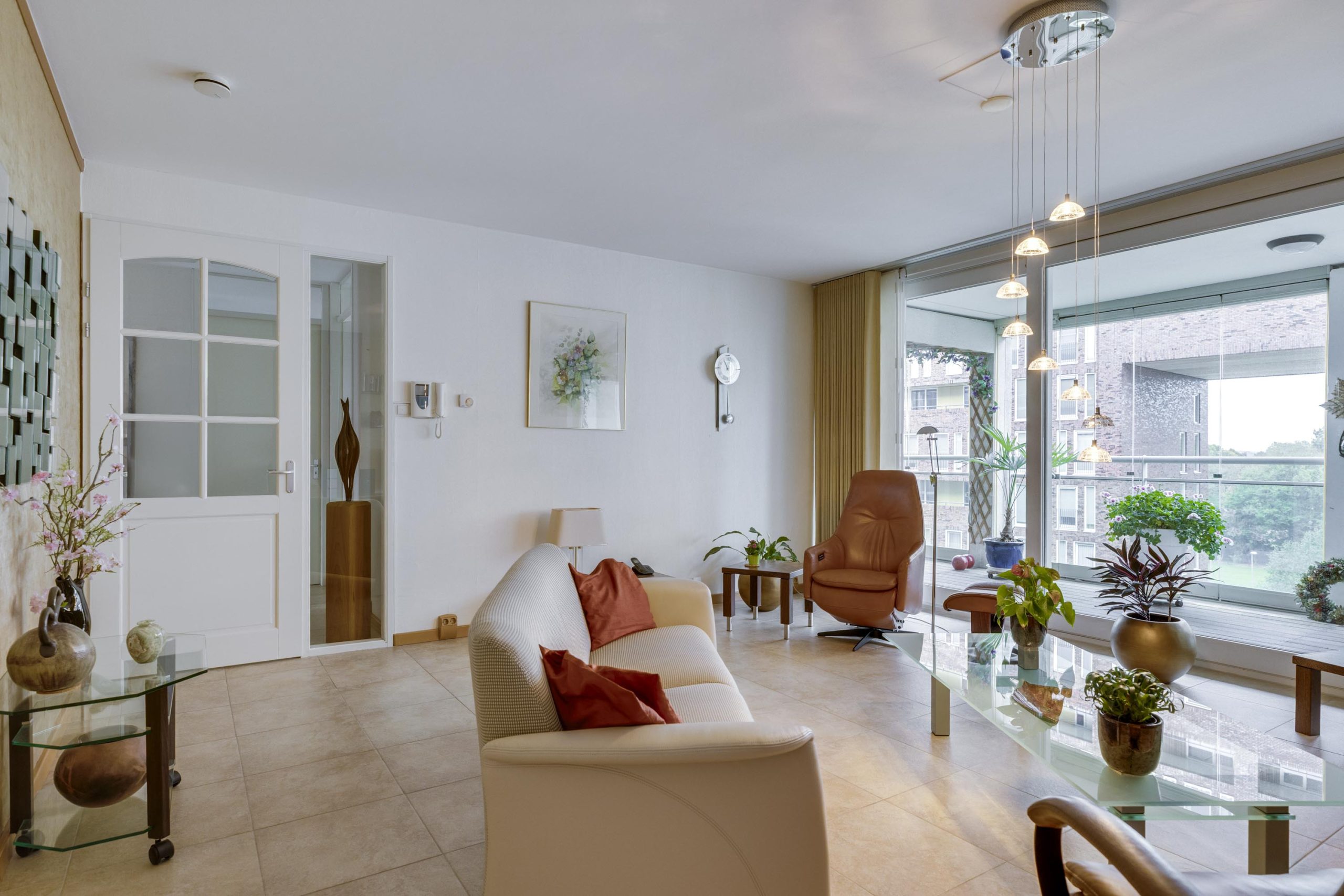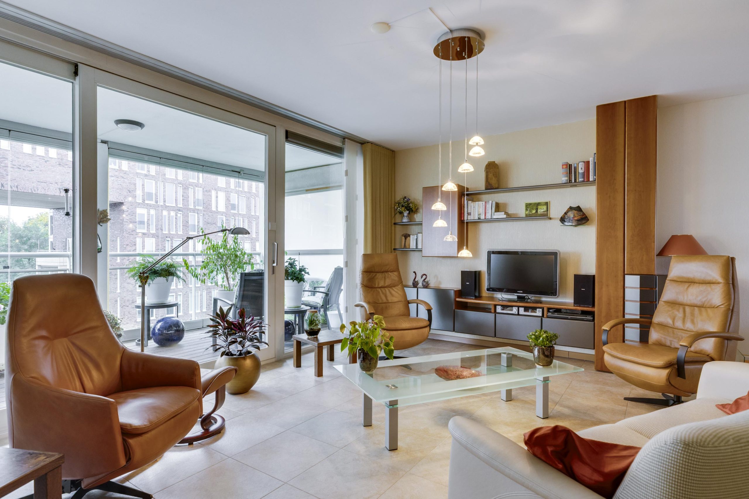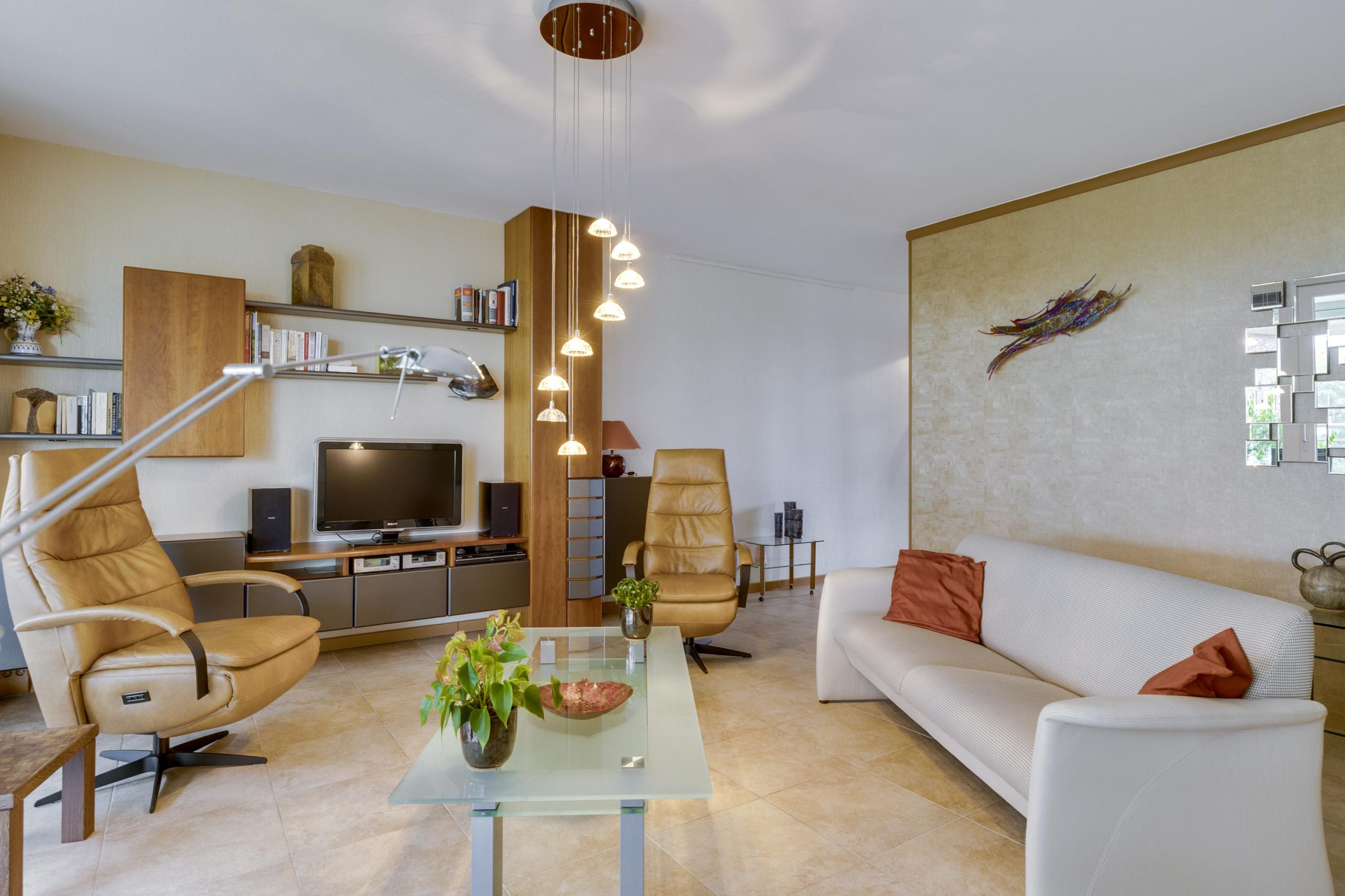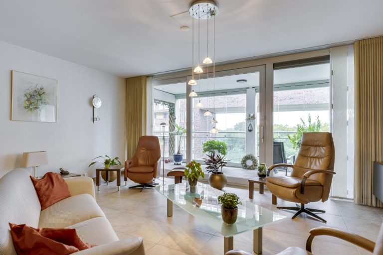 De lichte en ruime woonkamer vormt het hart van de woning en biedt via een schuifpui direct toegang tot een zonnige loggia. De ruimte is praktisch ingedeeld en afgewerkt met neutrale kleuren en een doorlopende, lichtgekleurde tegelvloer met vloerverwarming/koeling door de gehele woning, wat zorgt voor een rustige en verzorgde uitstraling. Vanuit de woonkamer én vanaf het Loggia over de volle breedte van het appartement, geniet je van een prachtig uitzicht op de geweldige boompartij aan de andere kant van de Abdijtuinen.