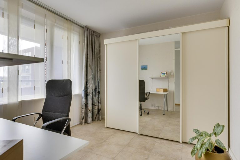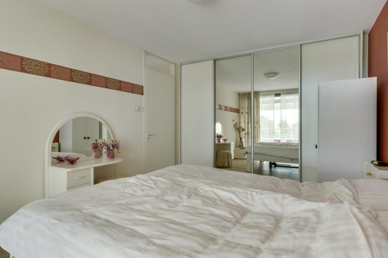 Het appartement beschikt over drie lichte en comfortabele slaapkamers. De eerste deur links bij binnenkomst leidt naar een ruime slaapkamer met een draaikiepraam en dubbel glas. Aan het einde van de linkerzijde bevindt zich de grootste slaapkamer. Deze royale kamer heeft inbouwkasten over de gehele breedte en een deur naar de loggia, wat de ruimte een extra open en luchtig gevoel geeft. De derde slaapkamer, naast de grootste, beschikt eveneens over een deur naar de loggia en biedt veel flexibiliteit, bijvoorbeeld als kinderkamer, logeerkamer of werkruimte.