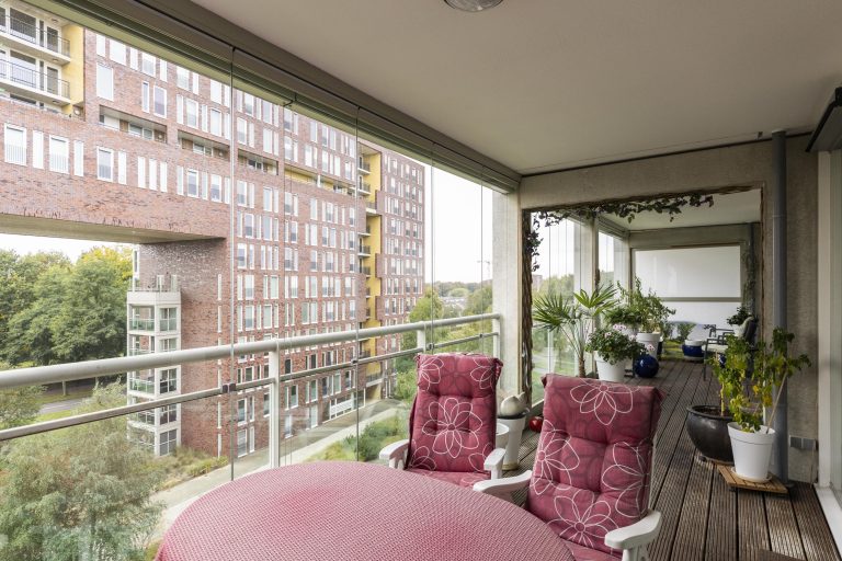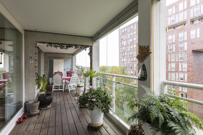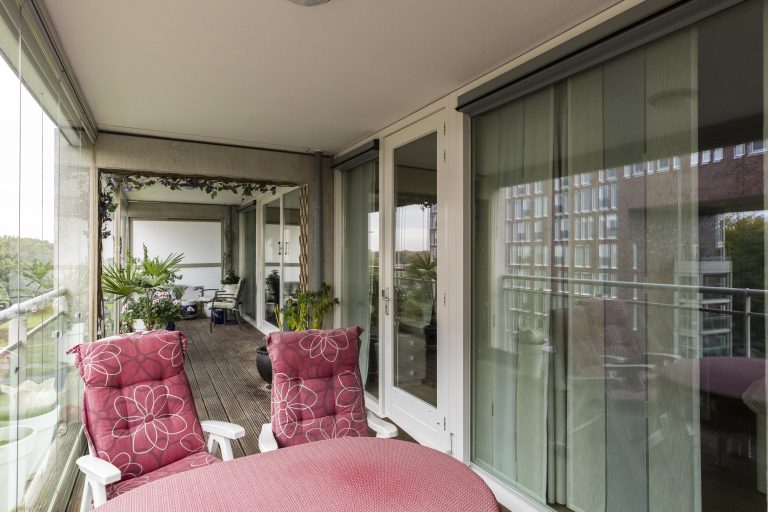 De loggia is vanuit meerdere kamers toegankelijk en vormt een heerlijke verlenging van de woonruimte. Dankzij de houten vloer en volledig afsluitbare beglazing is het hier het hele jaar door comfortabel vertoeven. U geniet van een vrij uitzicht over de fraai aangelegde complexen en het omliggende groen.
