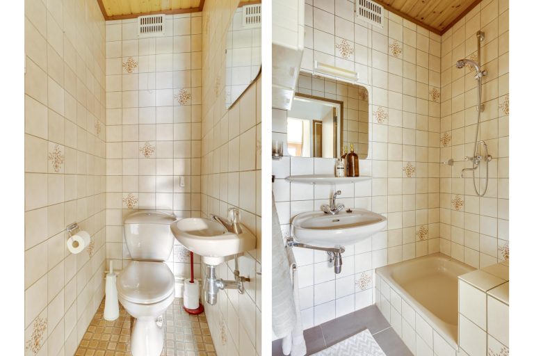 Naast het toilet ligt de badkamer, uitgerust met een douche en een wastafel. De vloer van de douche is in 2015 vernieuwd.